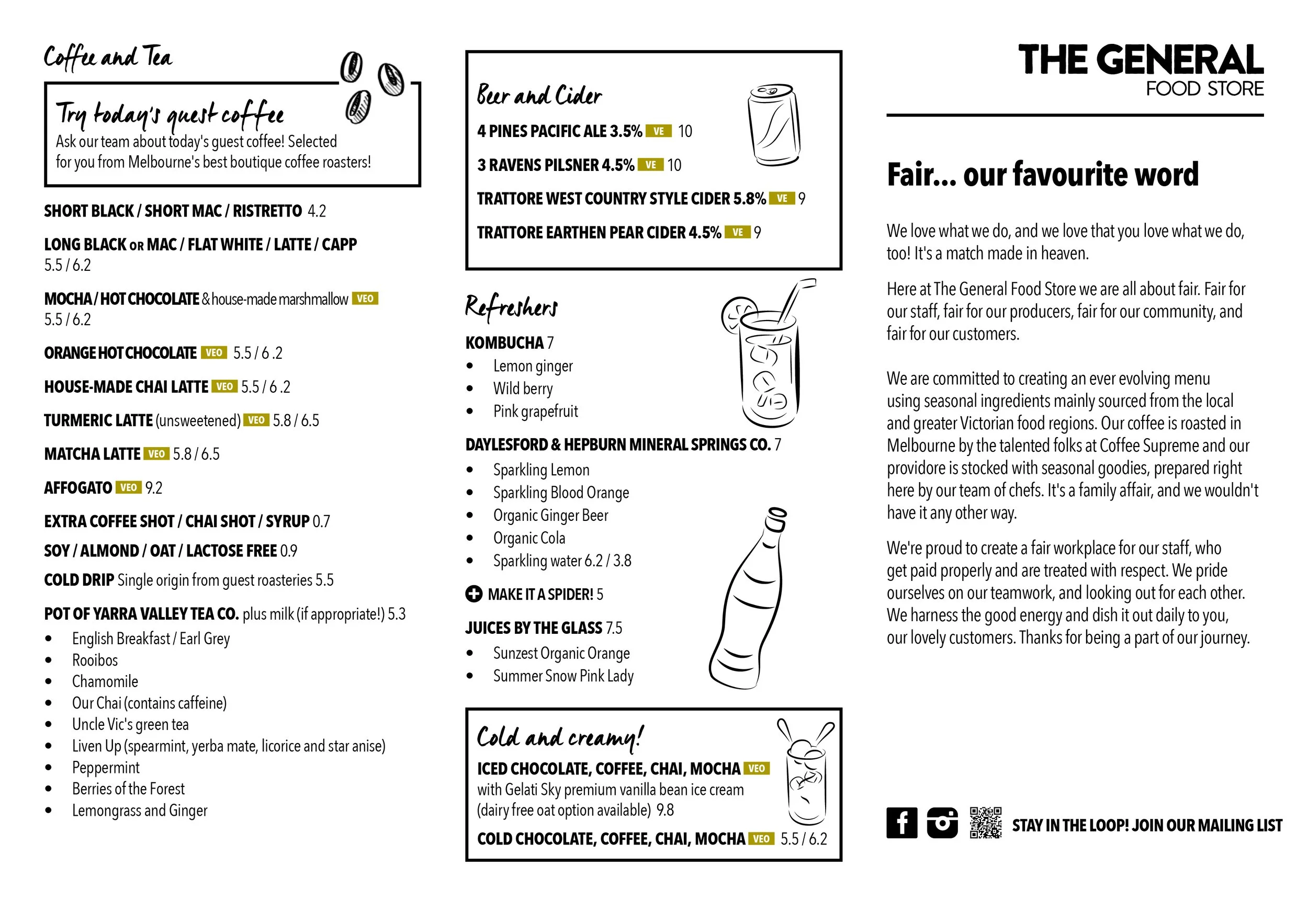 Dine-in Menu